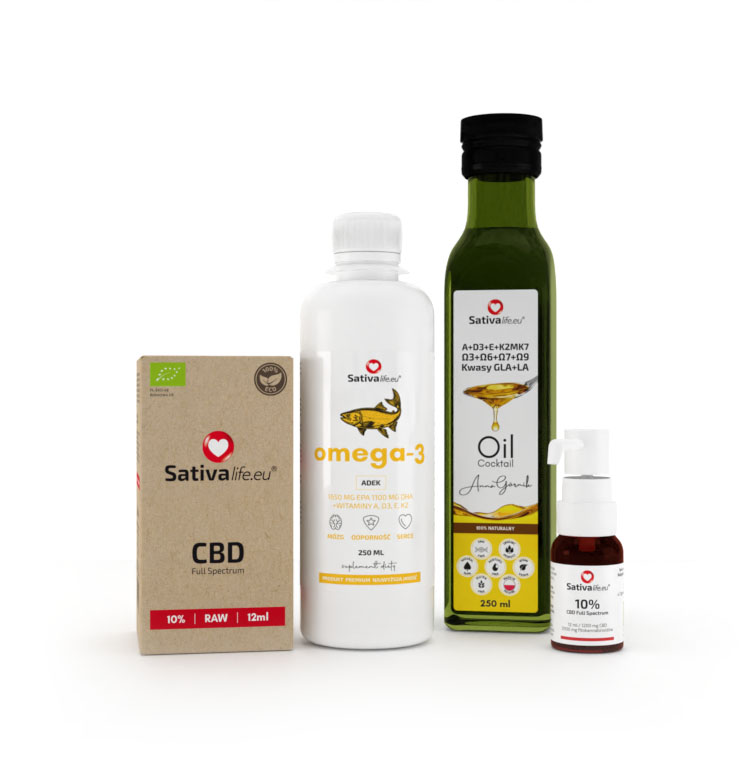 Połączenie kwasów tłuszczowych, naturalnych olejów roślinnych oraz ekstraktu CBD tworzy kompleksową formułę wsparcia organizmu. Kwasy tłuszczowe pomagają budować zdrowe błony komórkowe, witaminy wspierają procesy metaboliczne, a składniki roślinne pomagają utrzymać równowagę i dobre samopoczucie.